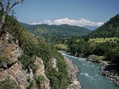Auf dem Weg von Kathmandu nach Pokhara zeigt sich über grünen