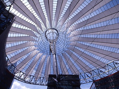 Wie ein großer Fächer schwebt das Dach des Sony-Centers über