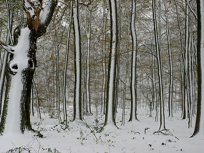 junge Bäume im Eichen-/Buchen-Mischwald im Naturschutzgebiet Davert.