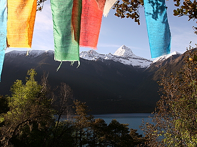 Draksum-Tso gehängt, damit der Wind die Gebete zu den Göttern