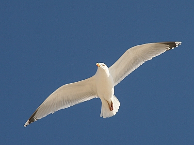 Diese Möwe segelt im Aufwind vor den Dünen auf der Nordseeinsel Sylt.