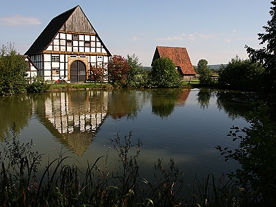 Im LWL-Freilichtmuseum für Volkskunde in Detmold liegt dieser schöne Dorfteich,