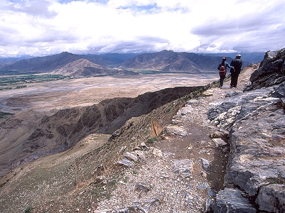 ihren Großvater auf einem Pilgerpfad rund um das Kloster Ganden.