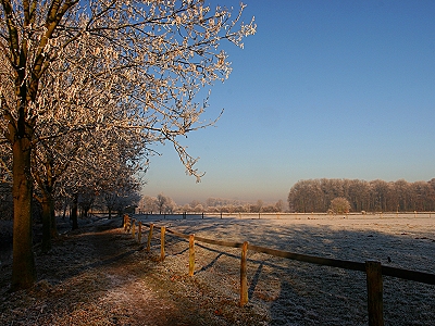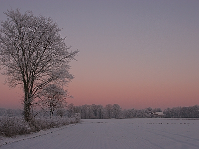 Morgenstimmung kurz vor Sonnenaufgang in der verschneiten Davert.
