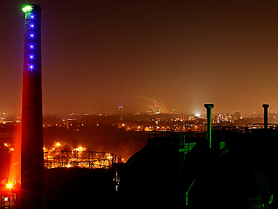 Lichterlandschaft im Industrie-Museumspark in Duisburg.