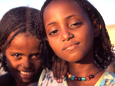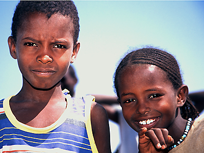 Kinder vom Stamm der Afar im Nordosten Äthiopiens schauen