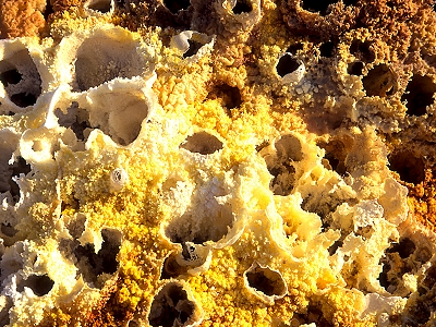 unzähligen kleinen Schloten vulkanische Gase und Dämpfe aus und bilden