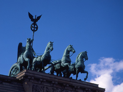 Auf dem Brandenburger Tor in Berlin lenkt die Siegesgöttin Viktoria