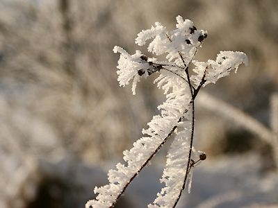 Noch hat der Winter die Davert fest im Griff: Rauhreif am Wegesrand.