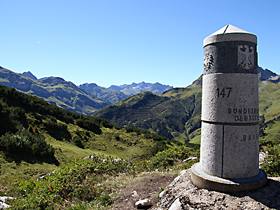 Blick vom Grenzstein 147, dem südlichsten Punkt Deutschlands am Haldenwanger Eck, nach Österreich.