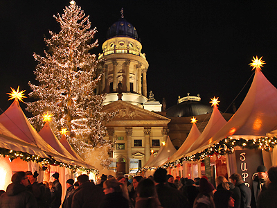 Der große Weihnachtsmarkt auf dem Gendarmenmarkt in Berlin.