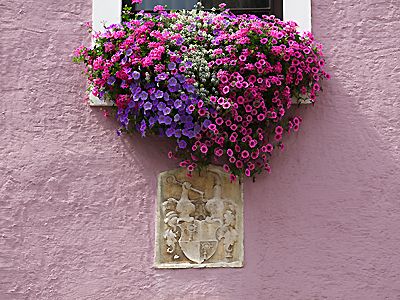 Schön mit Blumen geschmückt sind die Fenster in Kipfenberg im Altmühltal.