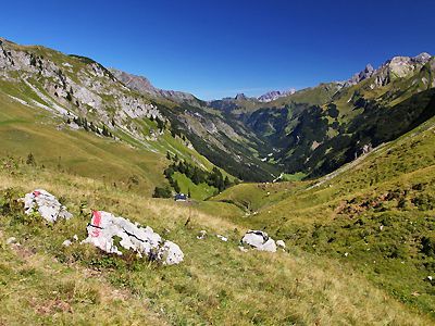 Blick von der Haldenwanger Alpe in das Rappental. Hier ist der südlichste Zipfel Deutschlands.