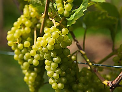 Weinreben kurz vor der Ernte in der Nähe von Meersburg am Bodensee.