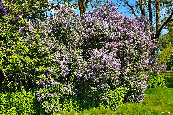 In der münsterländischen Parklandschaft immer wieder zu finden: Große prächtig blühende Fliedersträucher.