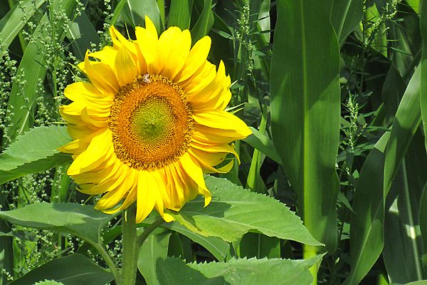 Um viele Maisfelder herum haben die Bauern in diesem Jahr Sonnenblumen gepflanzt, gelbe